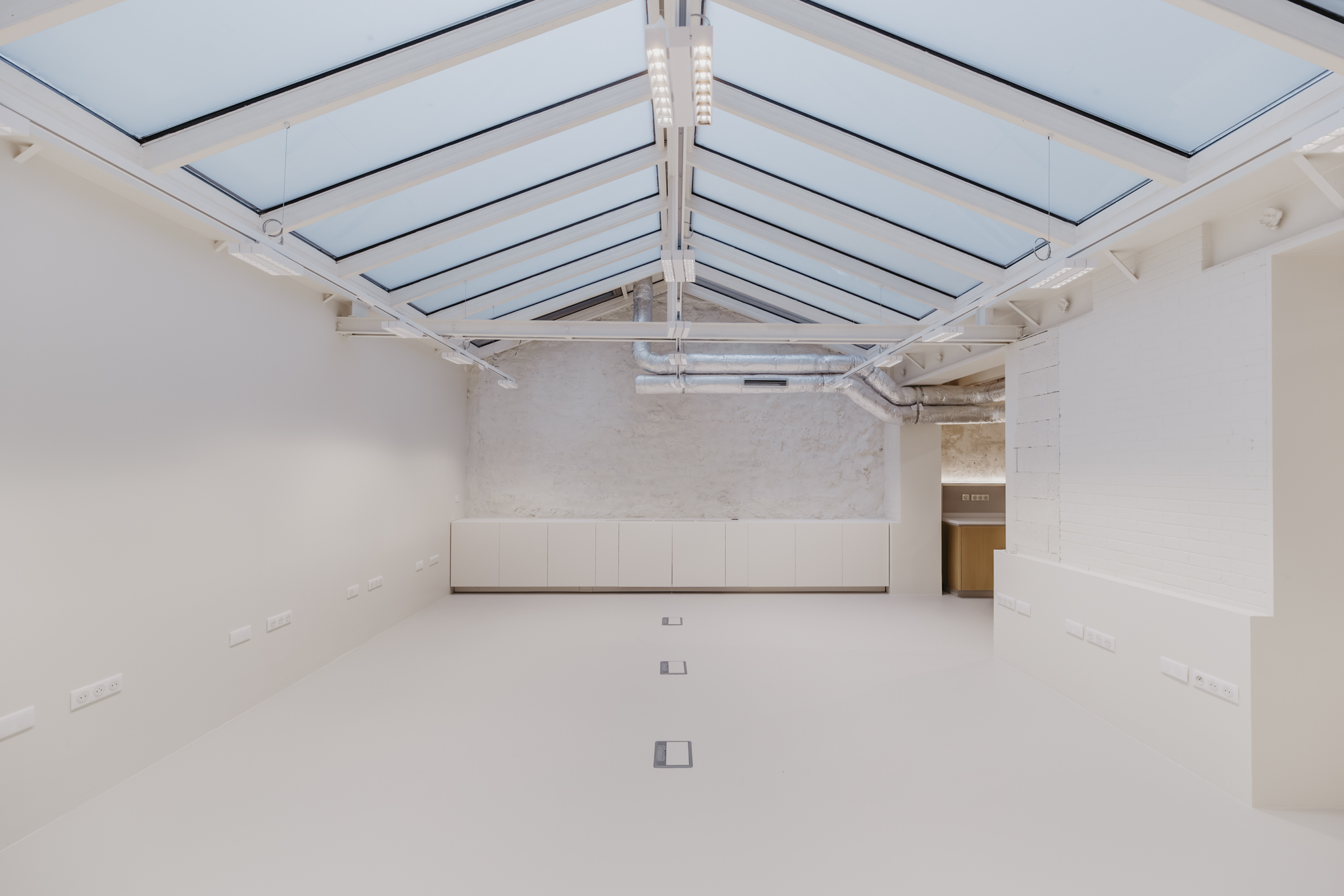 A 130 m2 room featuring a large glass roof adjoining the Gallery and located on the ground floor.